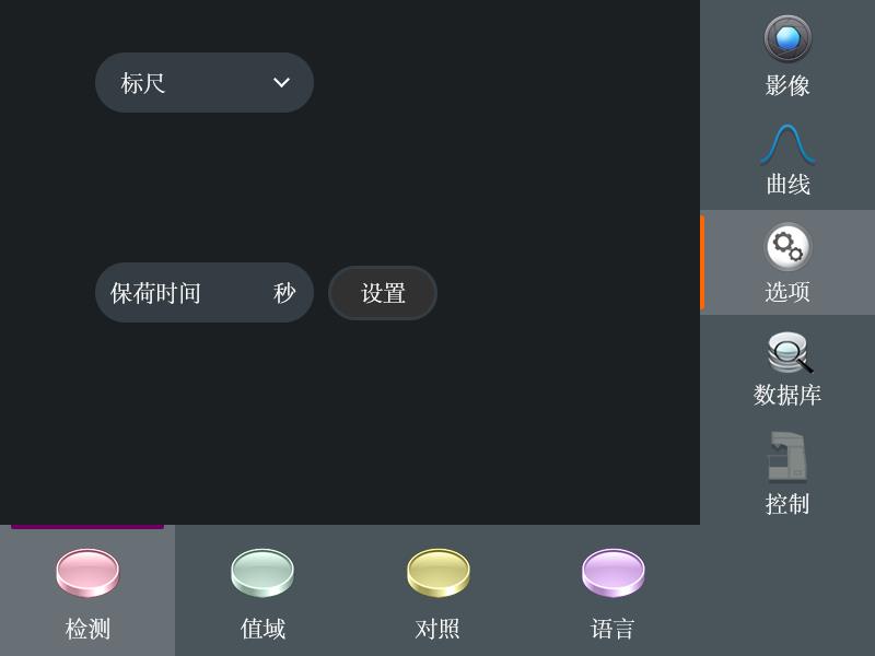 触摸屏操作面板 | 影像、力值曲线、选项、数据库、控制、加载开始、灯光调节、物镜切换 | |||